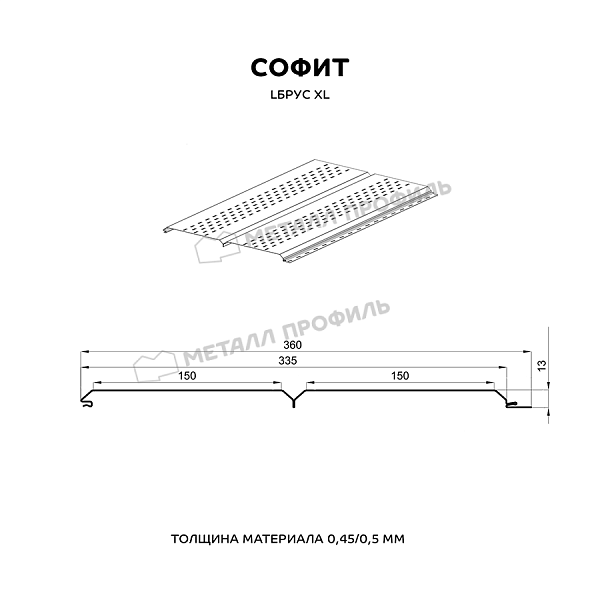 Софит МЕТАЛЛ ПРОФИЛЬ перфор. Lбрус-XL-14х335 (ПЭ-01-3003-0.45)